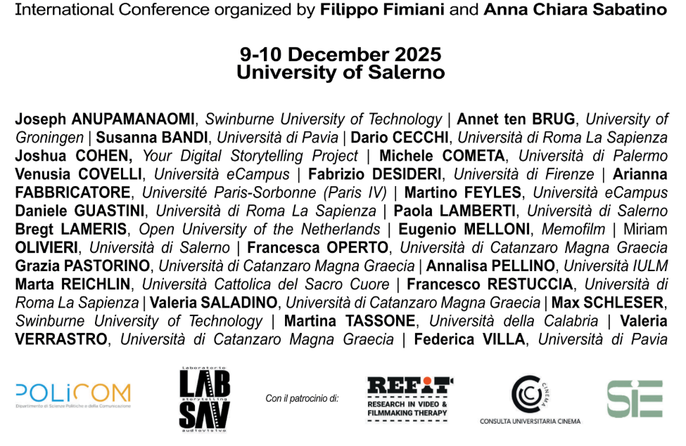 Anna Chiara Sabatino is an Adjunct Professor of Audiovisual Storytelling and Fellow Researcher in Visual Culture at University of Salerno. Her ongoing research is focused on cinematic agency, amateur authorship, self-representation through mobile media and methodological applications for therapeutic images. As Documentary filmmaker and MIUR certificated trainee in media education, she holds participatory workshops and masterclasses in Italy and across Europe. Among her most recent publications, Cinematic Psychotherapy. Audiovisual Languages, Therapeutic Strategies, and Autism Narratives, Routledge, London-NY, 2024 (with Valeria Saladino).